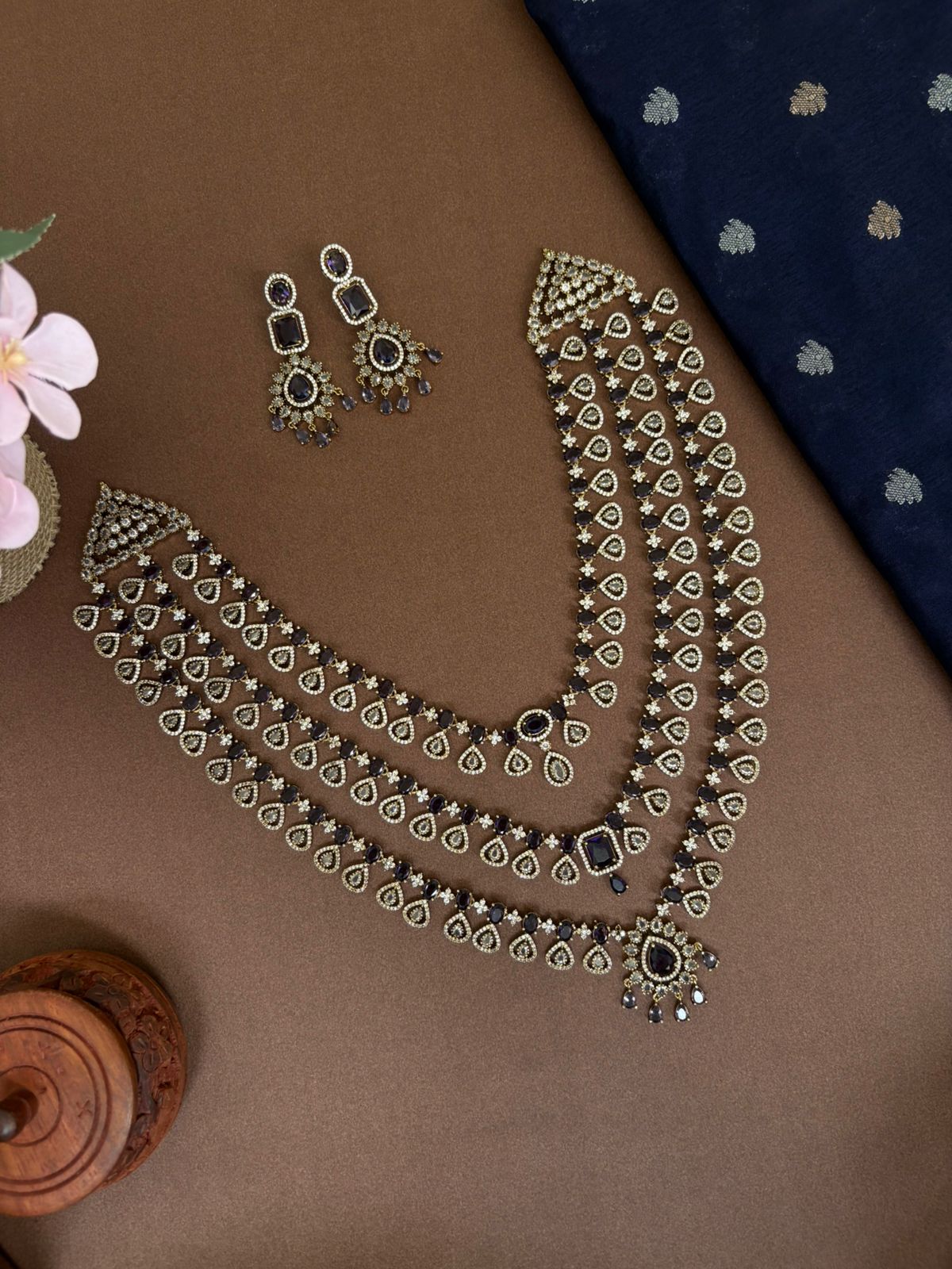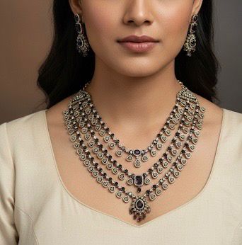 • consists of neckpiece and earrings along with rope.