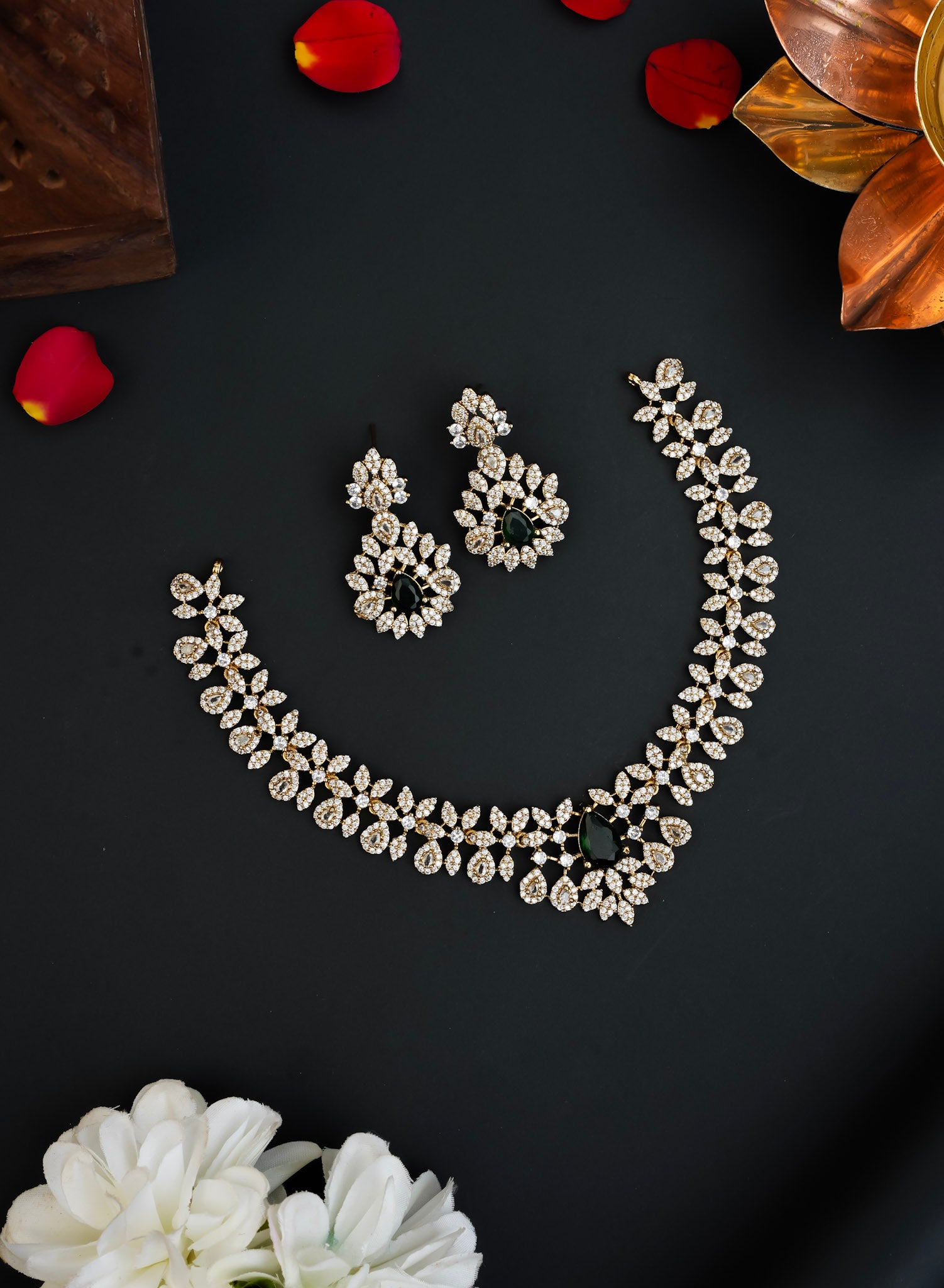 DIAMOND LOOKALIKE NECKSET (GREEN)