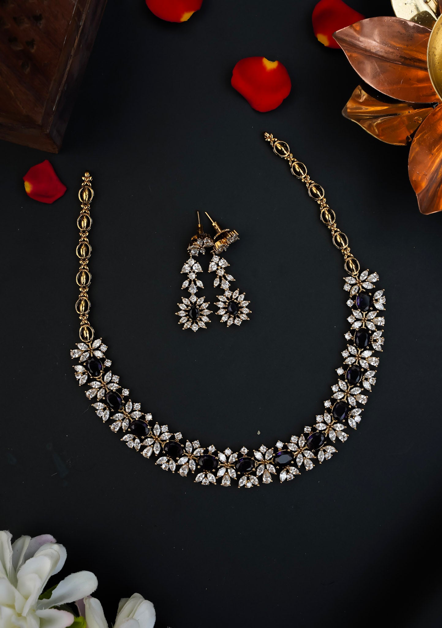 Each neck set includes a pair of earrings and a rope. If you prefer a chain instead of a rope, an additional charge of ₹70 will apply.